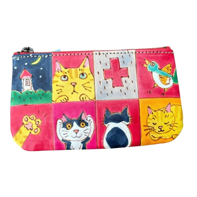 手描きの本革製ファスナー式ミニポーチです。 柄は手描き手染めの1点ものです。 サイズヨコ13センチ×高さ約8、5センチ 小銭入れ、名刺入れ、カード入れ、鍵入れ等 色々使えるポーチです。 送料について その他の、かさばるものと購入の場合、レターパックライトや、レターパックプラスでも送れない場合があります。 その際は、キャンセルして再度注文し直直して頂く場合があります。 ご注意下さいませ。