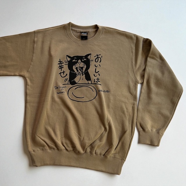 人気の「おいしいは私」のトレーナーです。 バックプリント付で、ベージュの着やすい色目になっております。 当店オリジナルデザインで,他社では販売しておりません。 厚さ10オンス 洗濯しても丈夫なシルク印刷になっております。 男女兼用 綿100% サイズ M L XL の3サイズです 送料について 15000円以上で送料は無料になります。