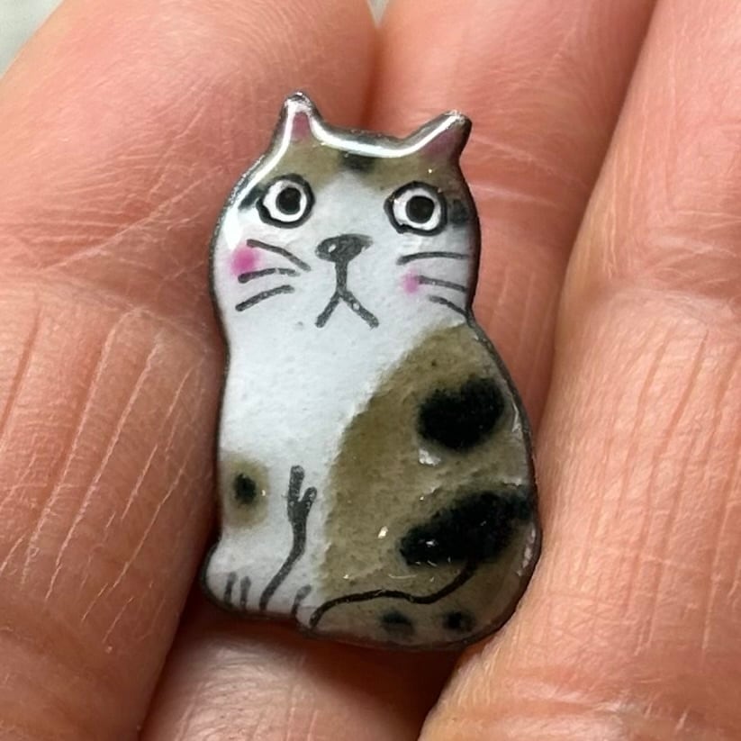 サイズは幅10mm高さ20mmの小さなブローチです。100円玉と比べて見てください。