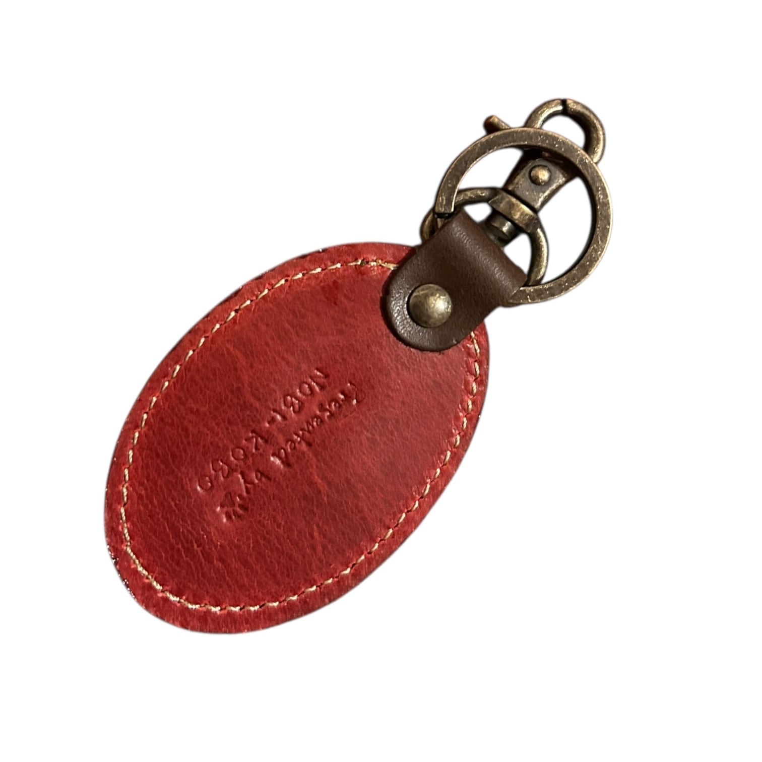 牛革のヌメ革を、手描き手染めして仕上げた手作り一点物のキーホルダーです。