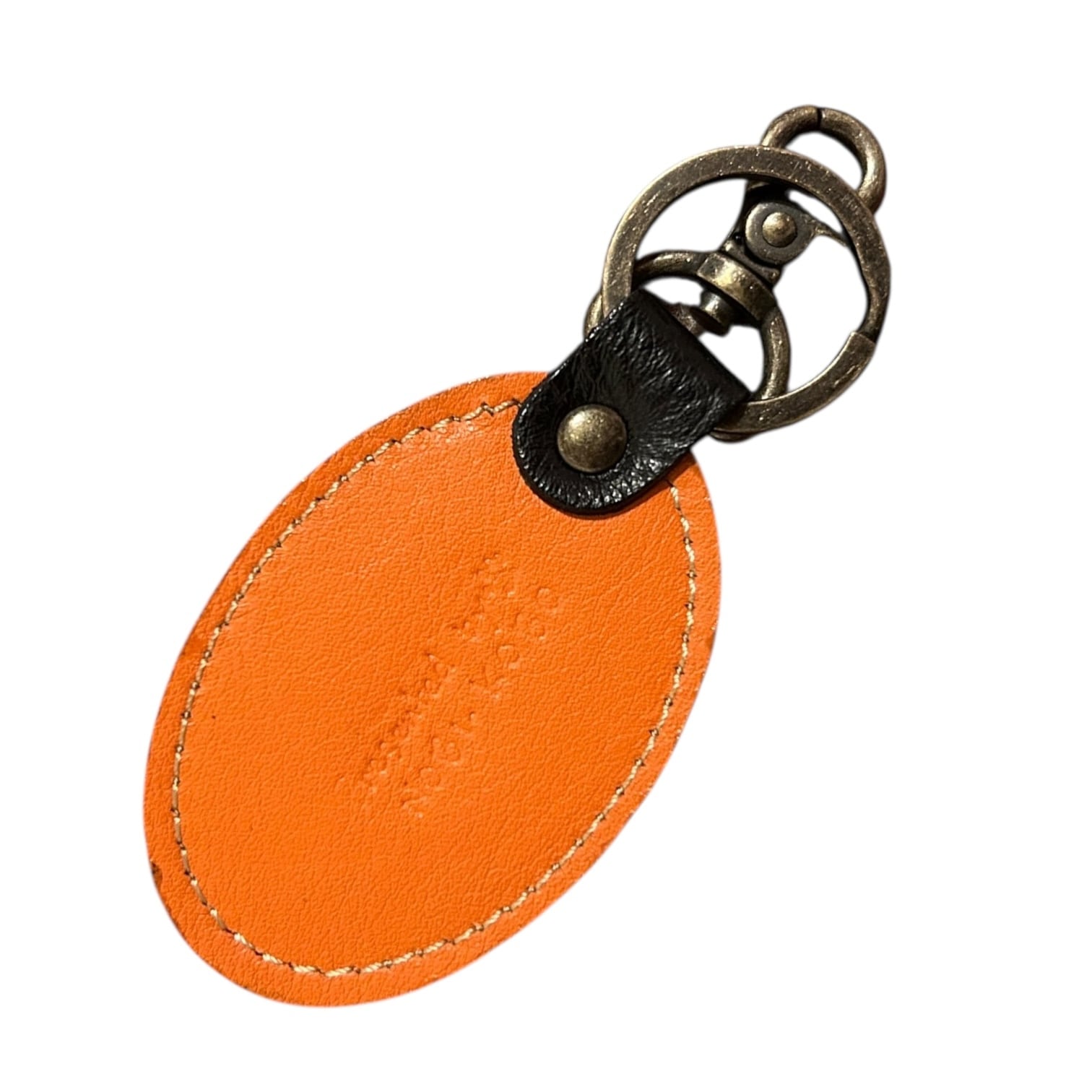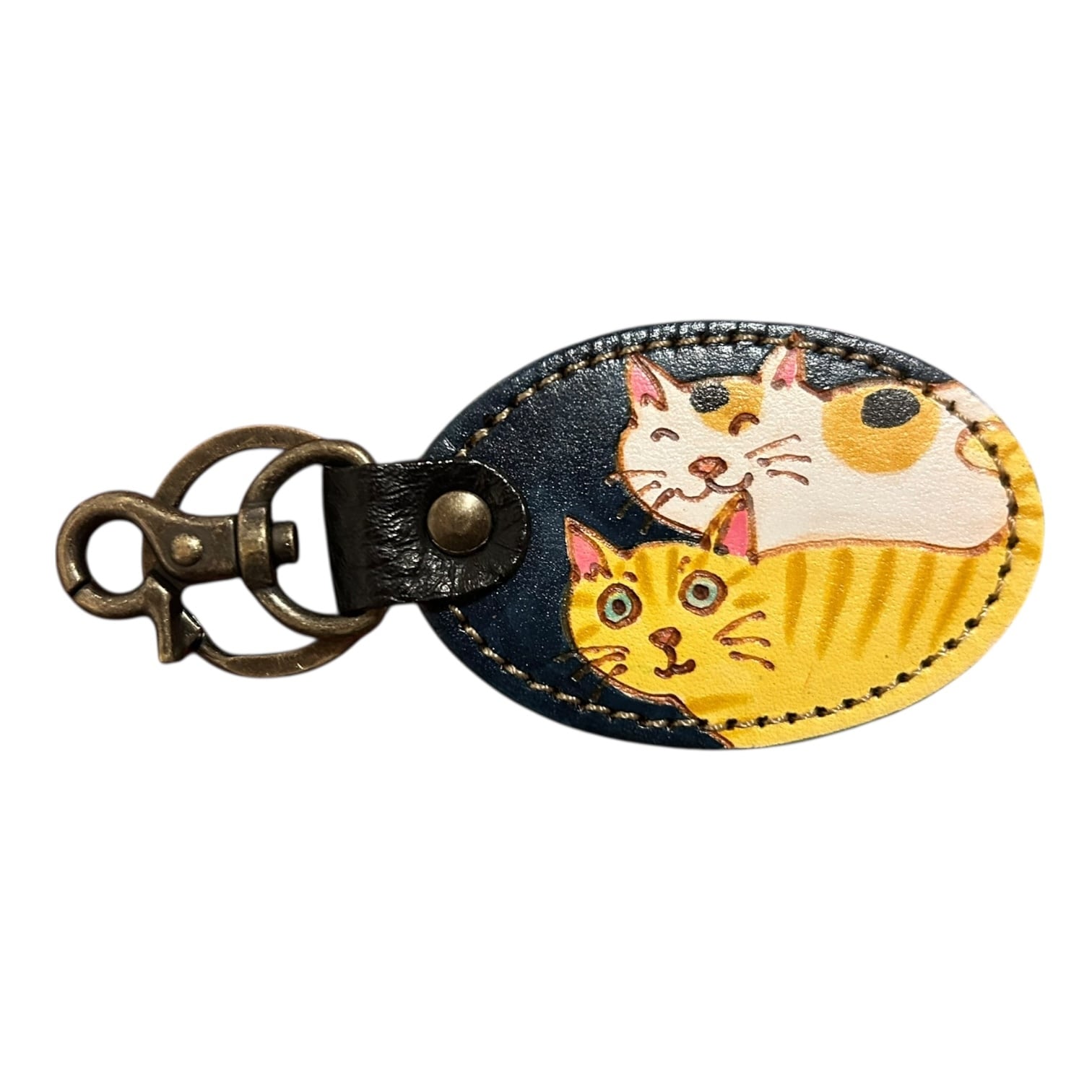 牛革のヌメ革を、手描き手染めして仕上げた手作り一点物のキーホルダーです。