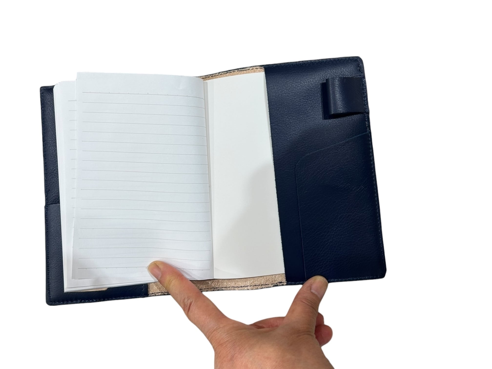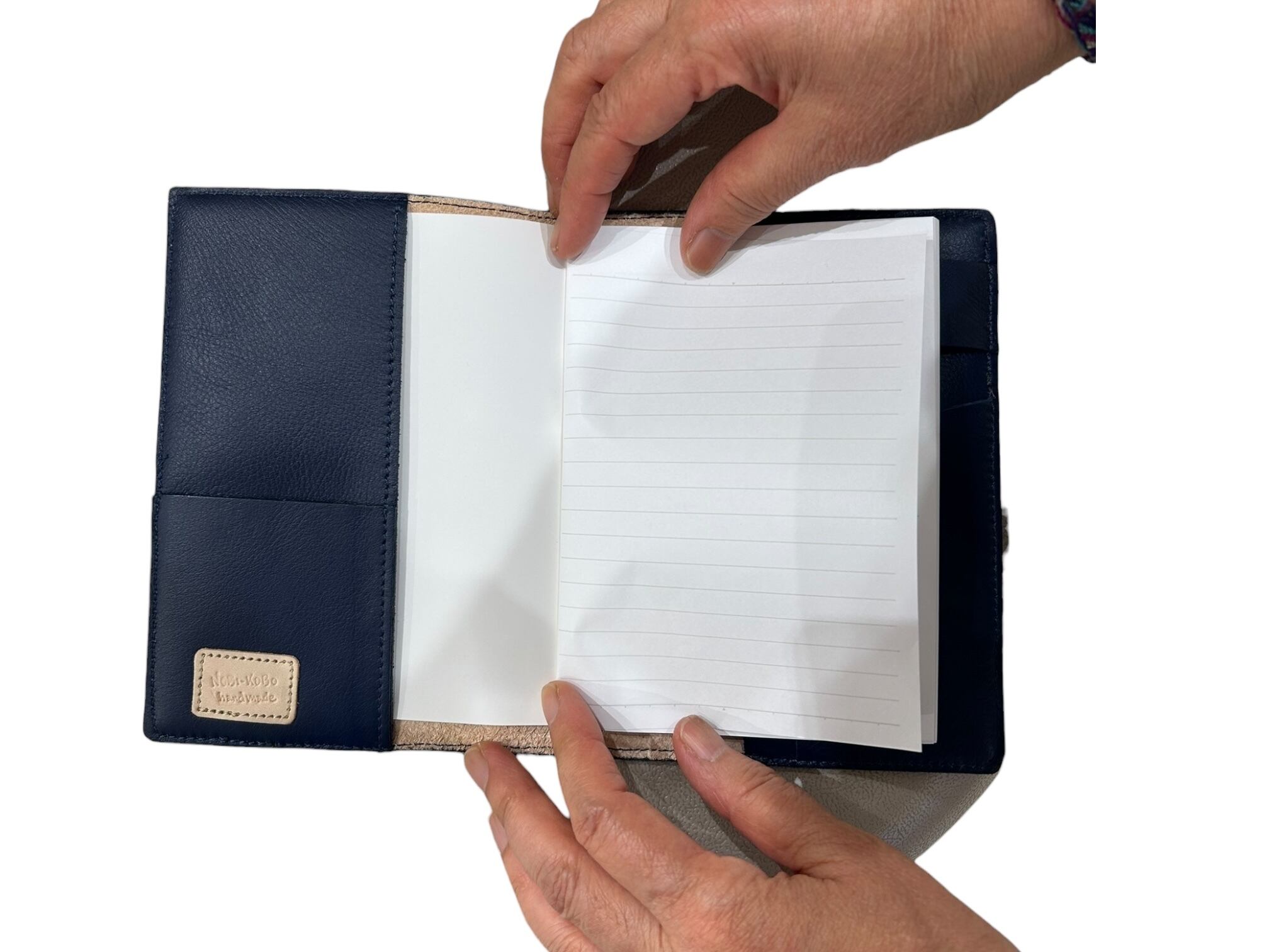 ペンポルダーやカードも収納できる機能性を兼ね備え、文庫本サイズなので、ブックカバーとしてもお使いいただけます。