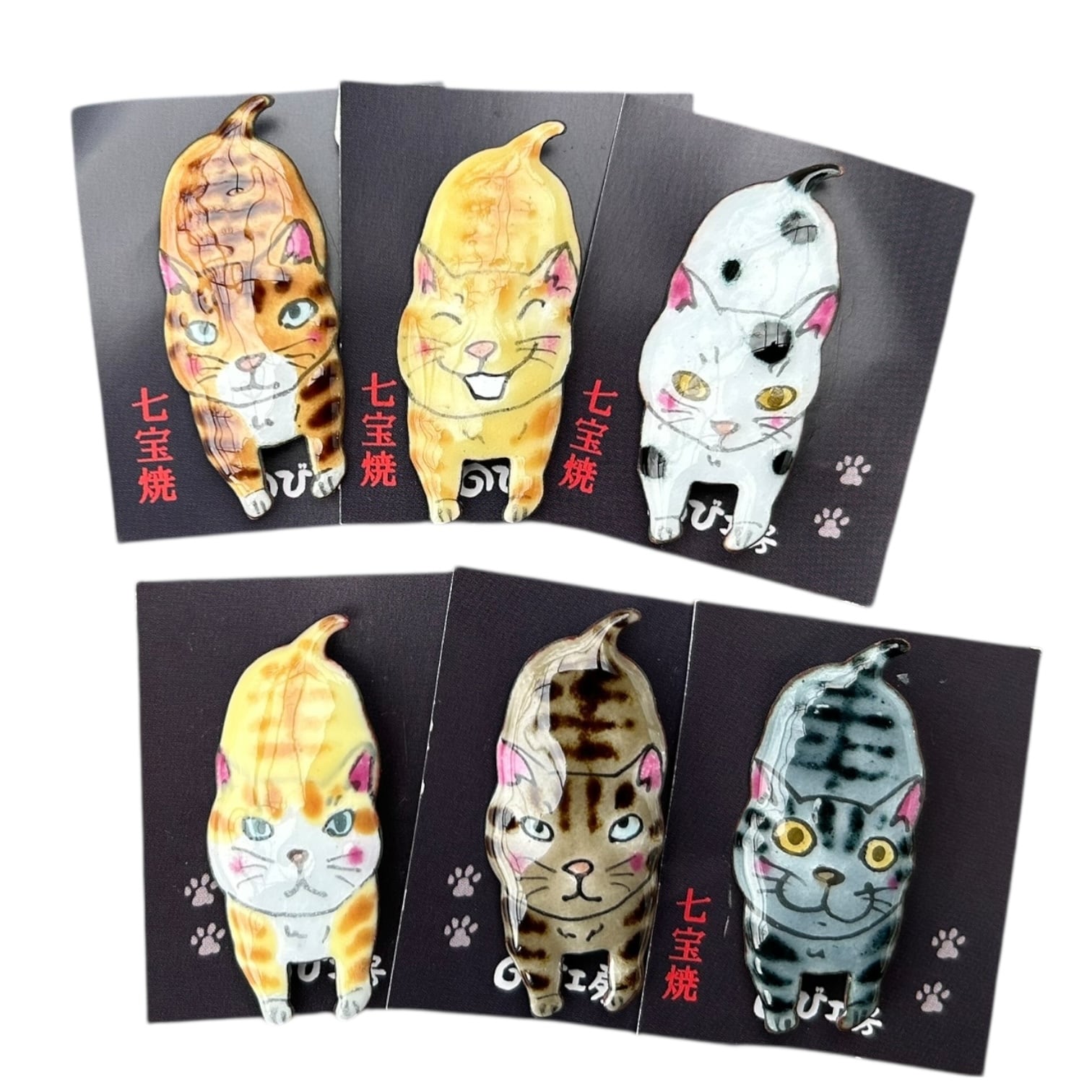 七宝焼 歩き猫ブローチ15
