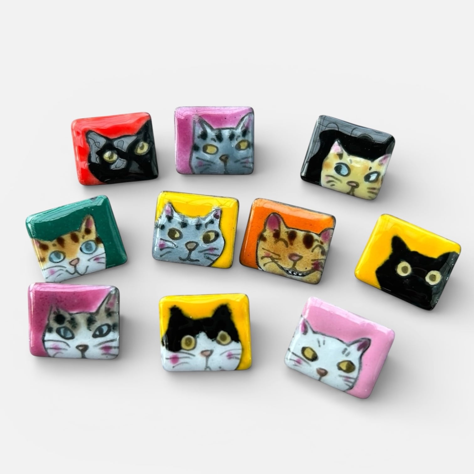 七宝焼とは、銅板にガラスの粉(釉薬)を800℃くらいで何度も焼き付け、手間暇かけて作っています。
