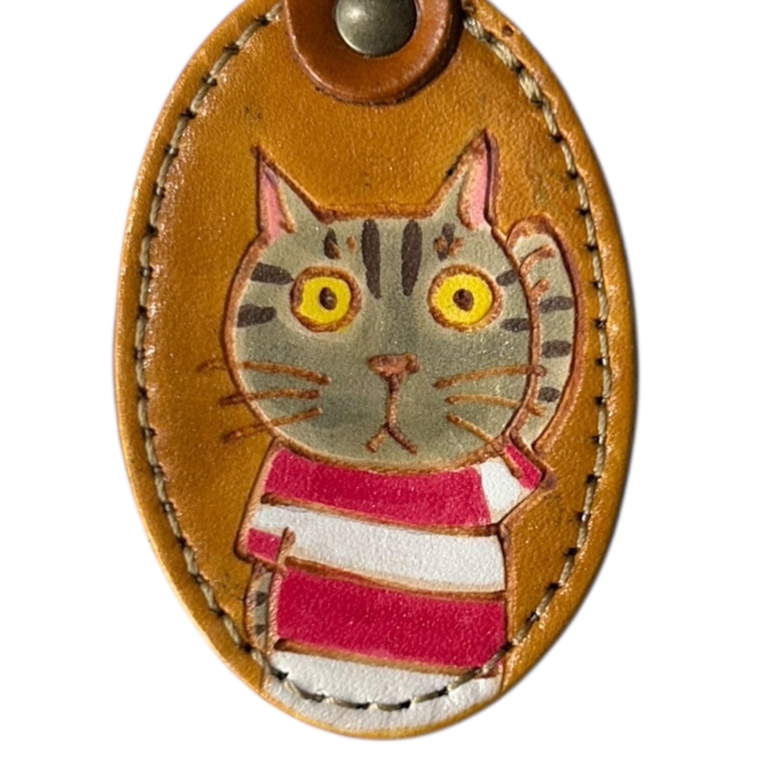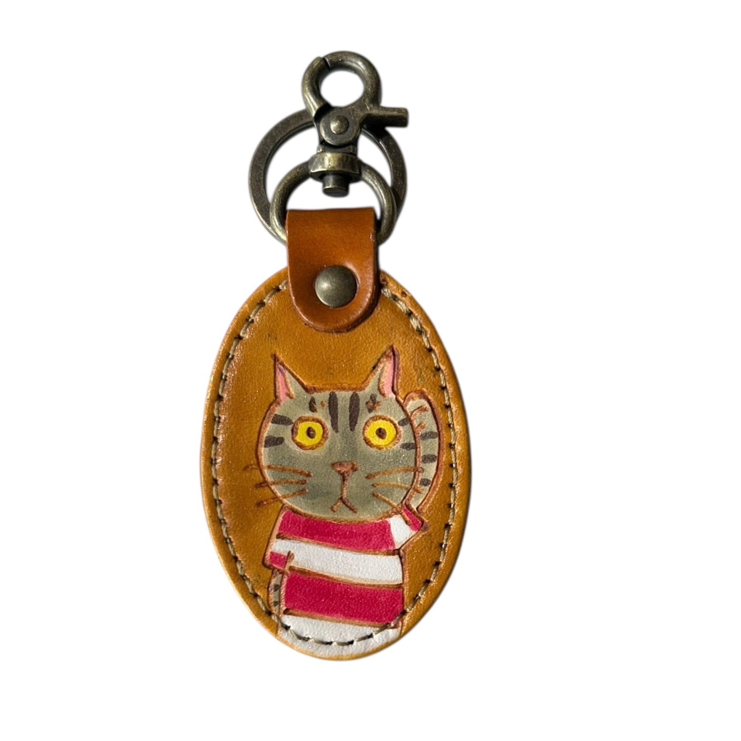 牛革のヌメ革を、手描き手染めして仕上げた手作り一点物のキーホルダーです。