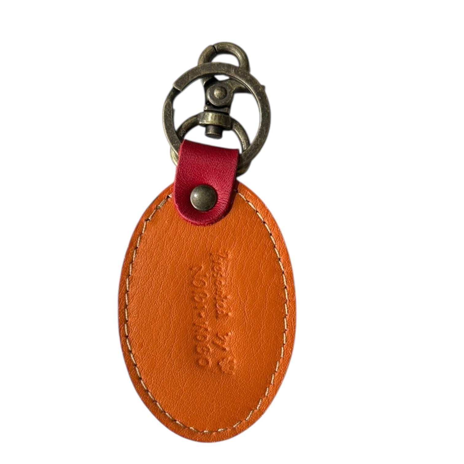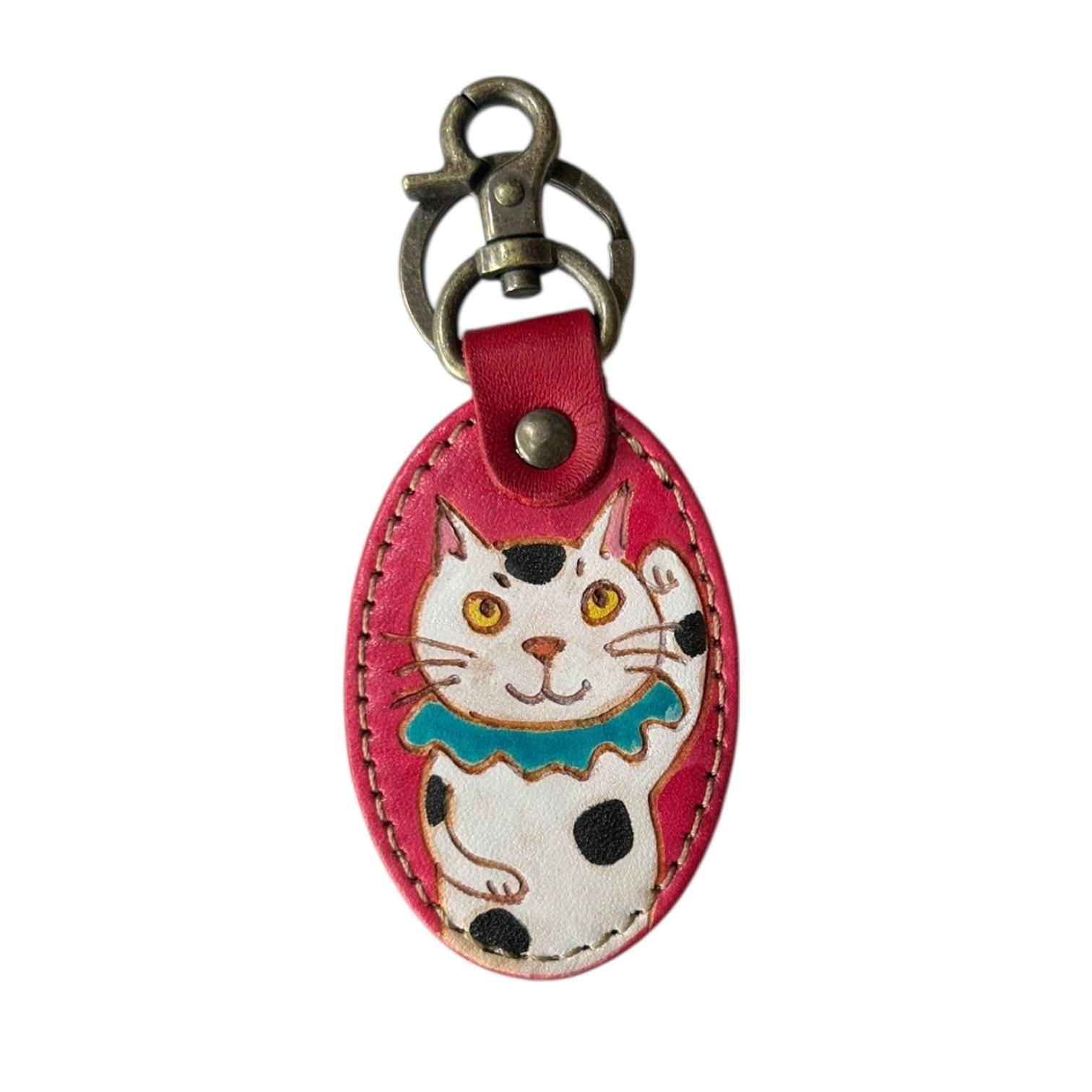 牛革のヌメ革を、手描き手染めして仕上げた手作り一点物のキーホルダーです。