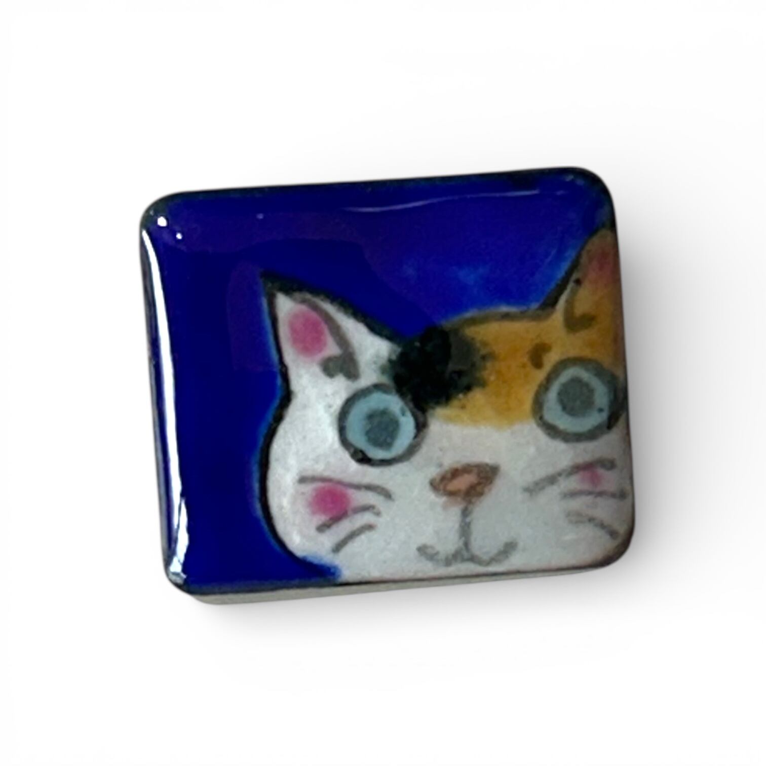 七宝焼とは、銅板にガラスの粉(釉薬)を800℃くらいで何度も焼き付け、手間暇かけて作っています。