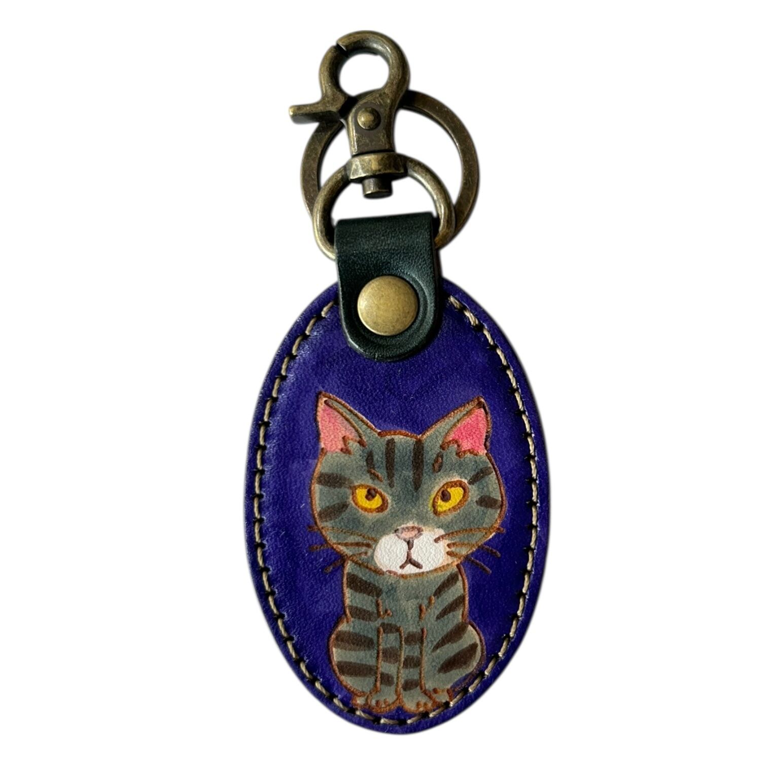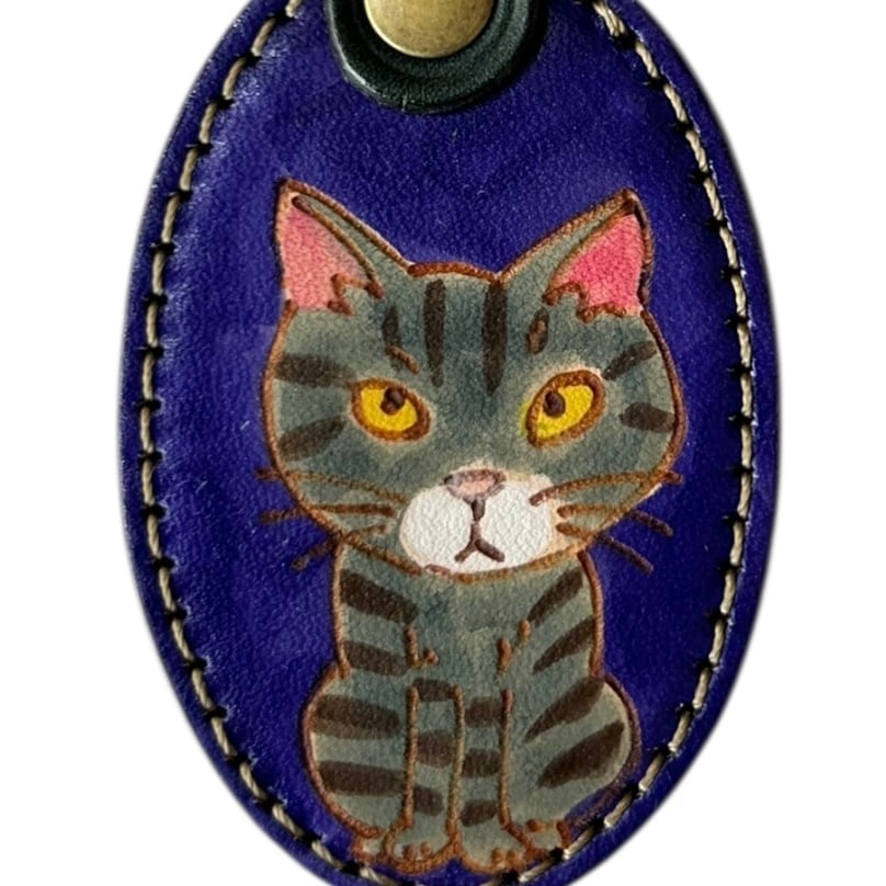 牛革のヌメ革を、手描き手染めして仕上げた手作り一点物のキーホルダーです。