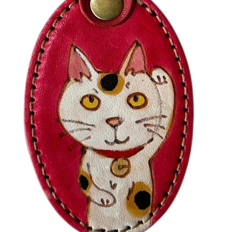 牛革のヌメ革を、手描き手染めして仕上げた手作り一点物のキーホルダーです。