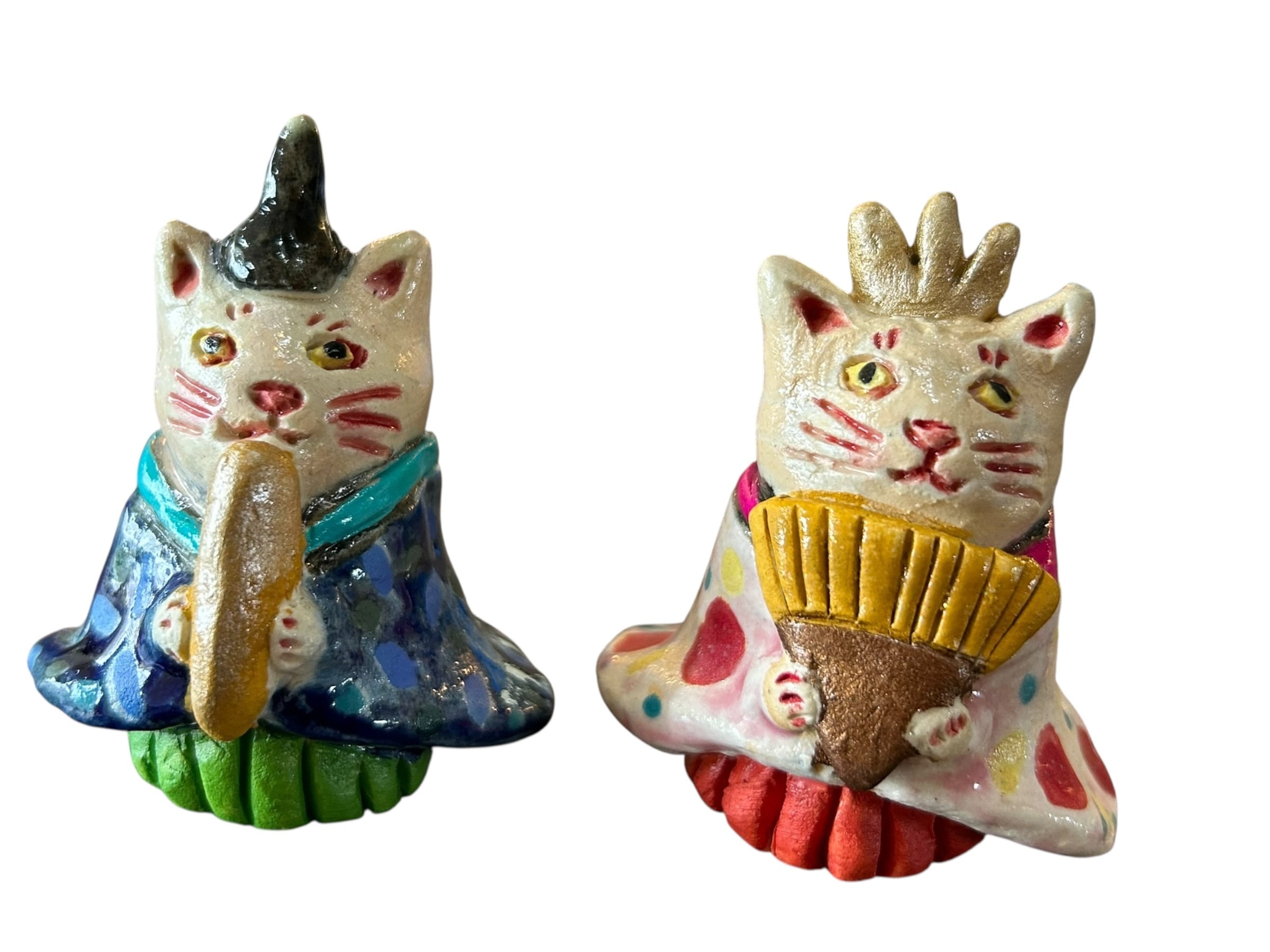 手捻りの陶芸品のお雛様です。