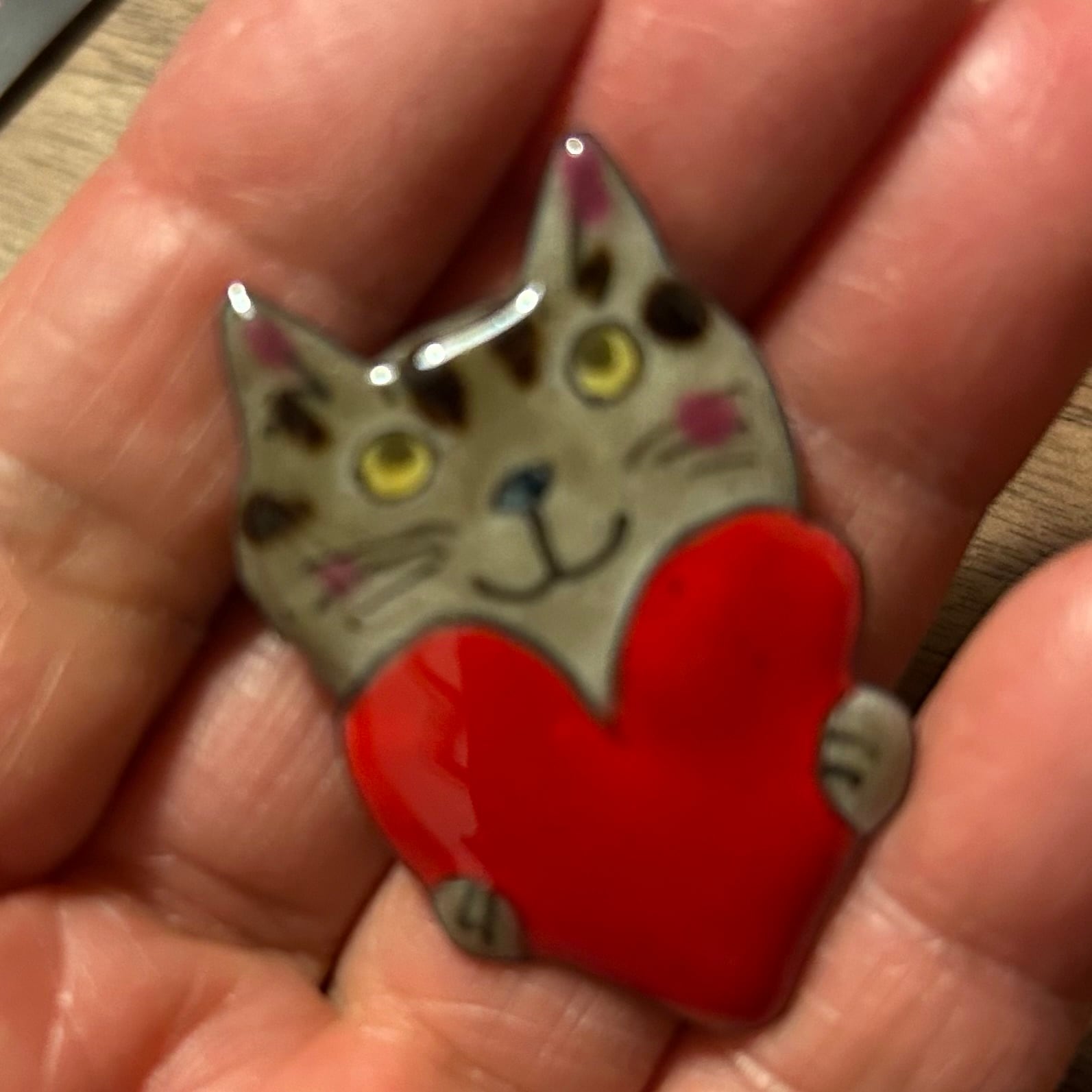 七宝焼ハート持ち猫ブローチ02