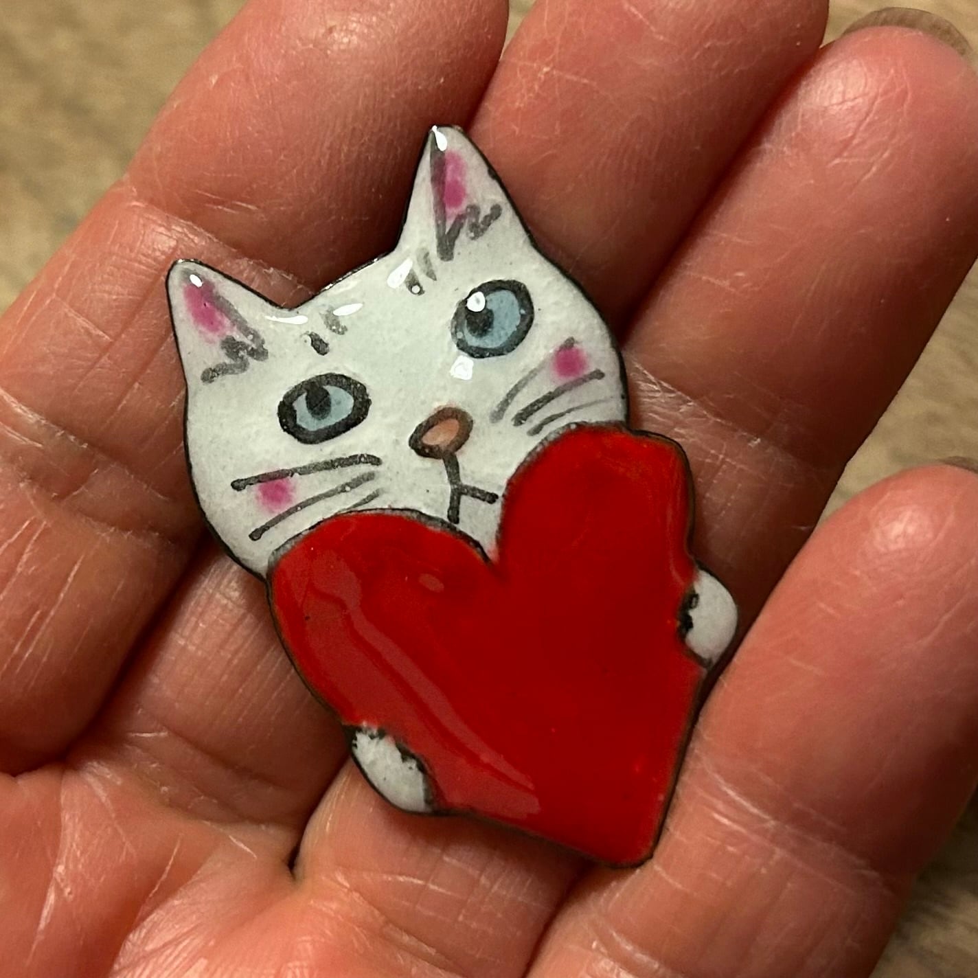 七宝焼ハート持ち猫ブローチ06