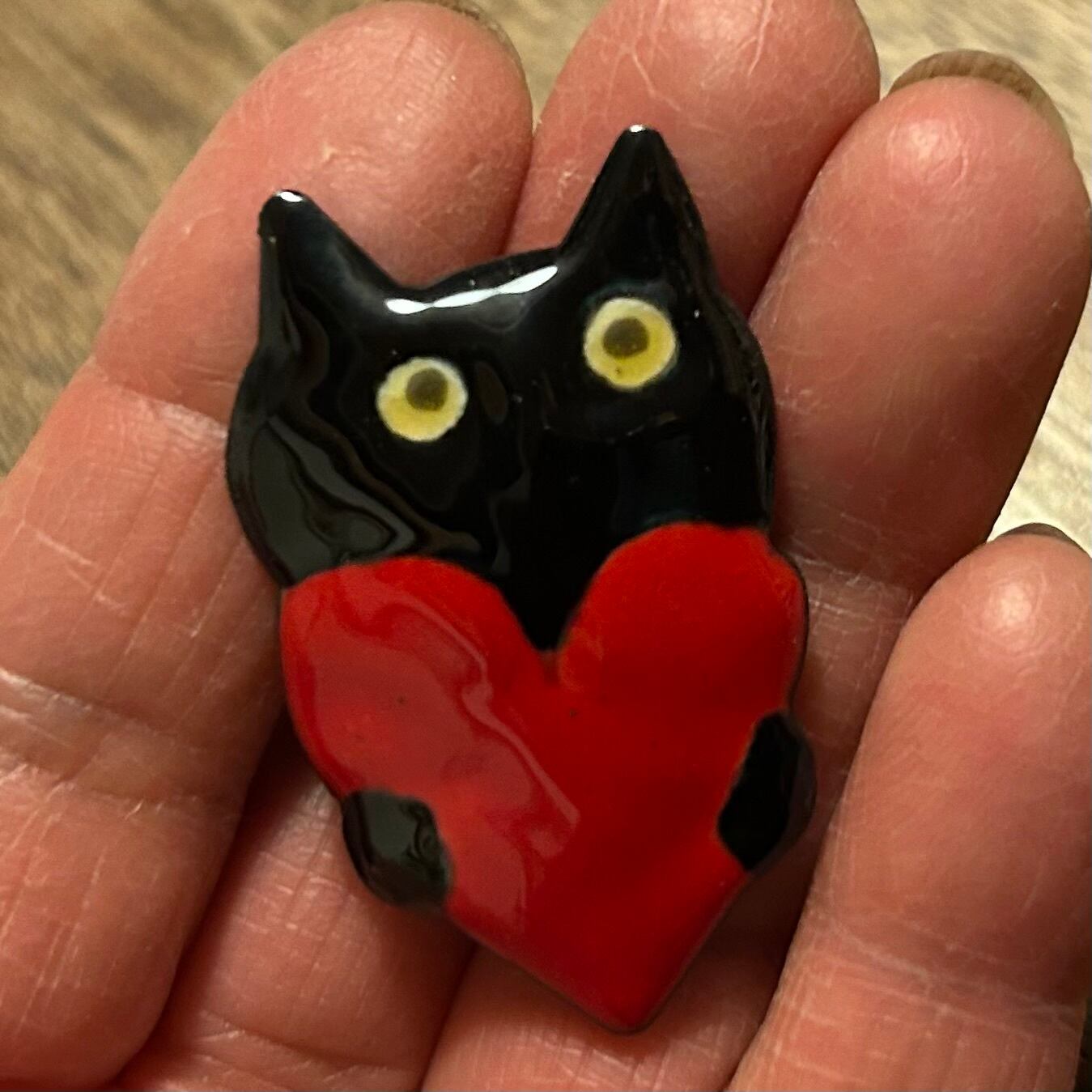 七宝焼ハート持ち猫ブローチ08