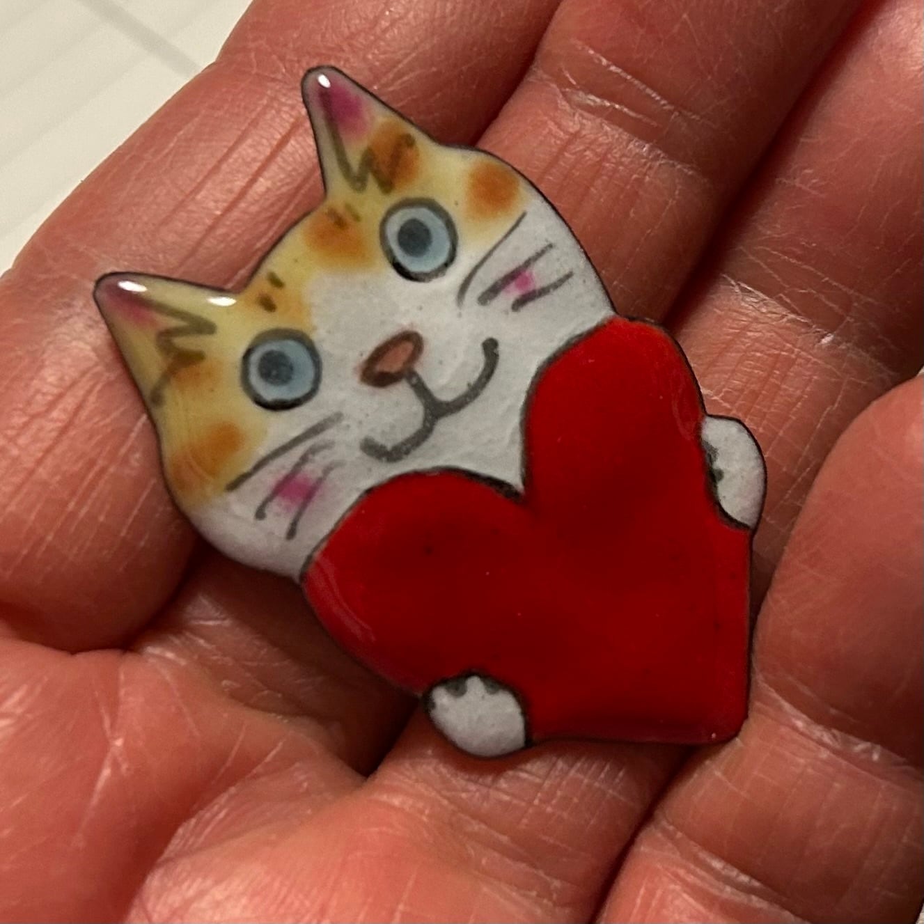 七宝焼ハート持ち猫ブローチ11