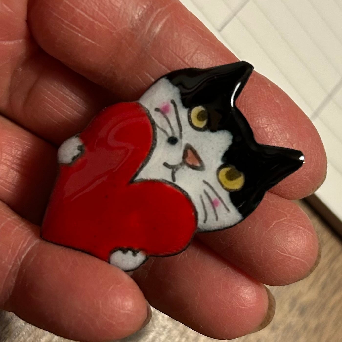 七宝焼ハート持ち猫ブローチ12