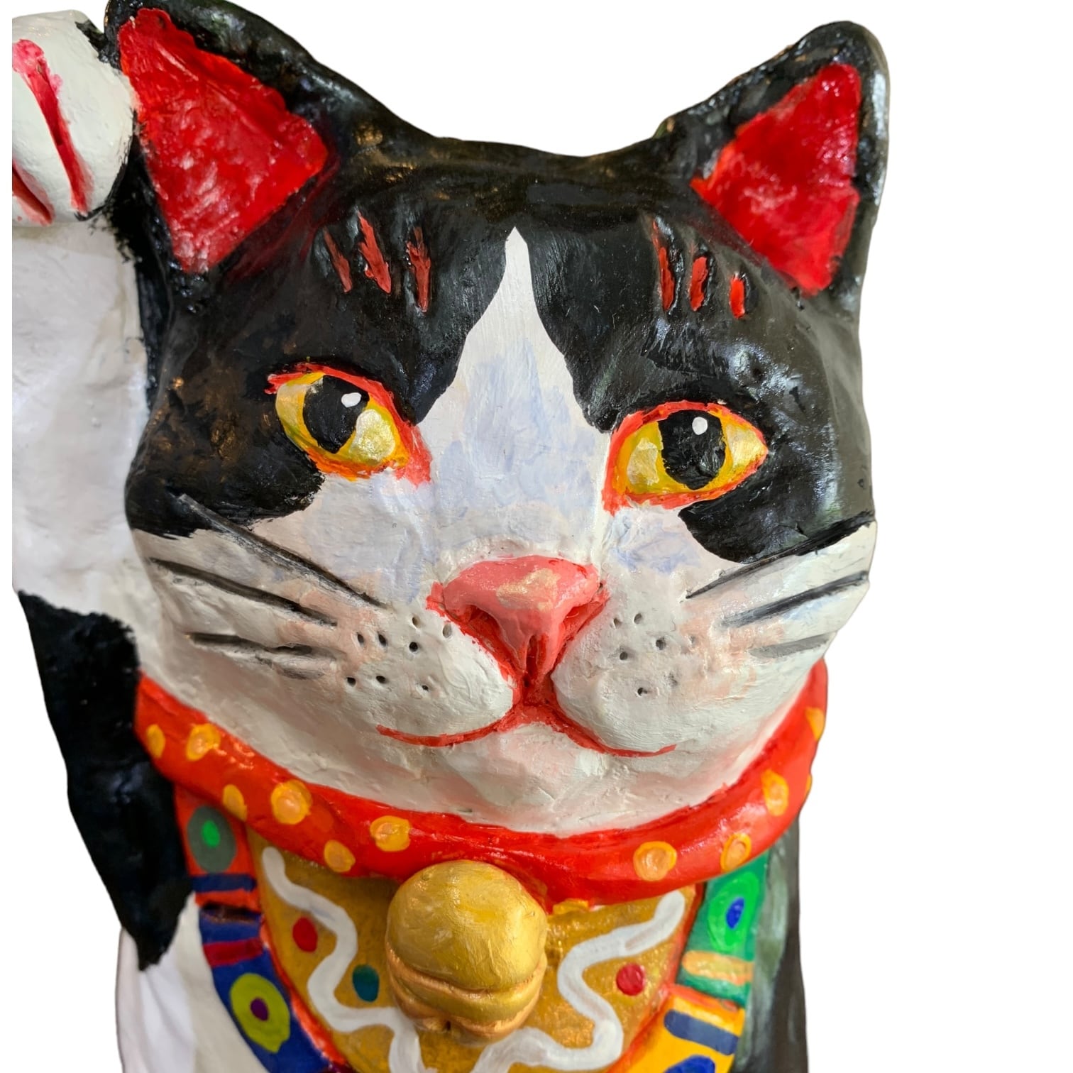 高さ約30cm弱の大きな招き猫は、成形から色付け全ての作業を手作りで仕上げています。