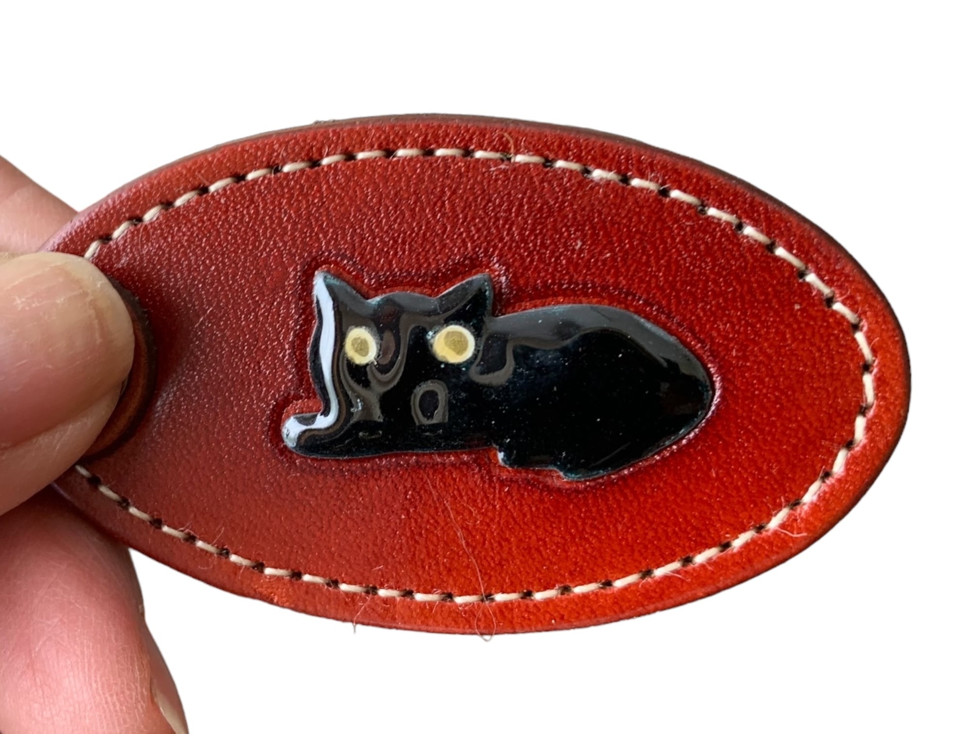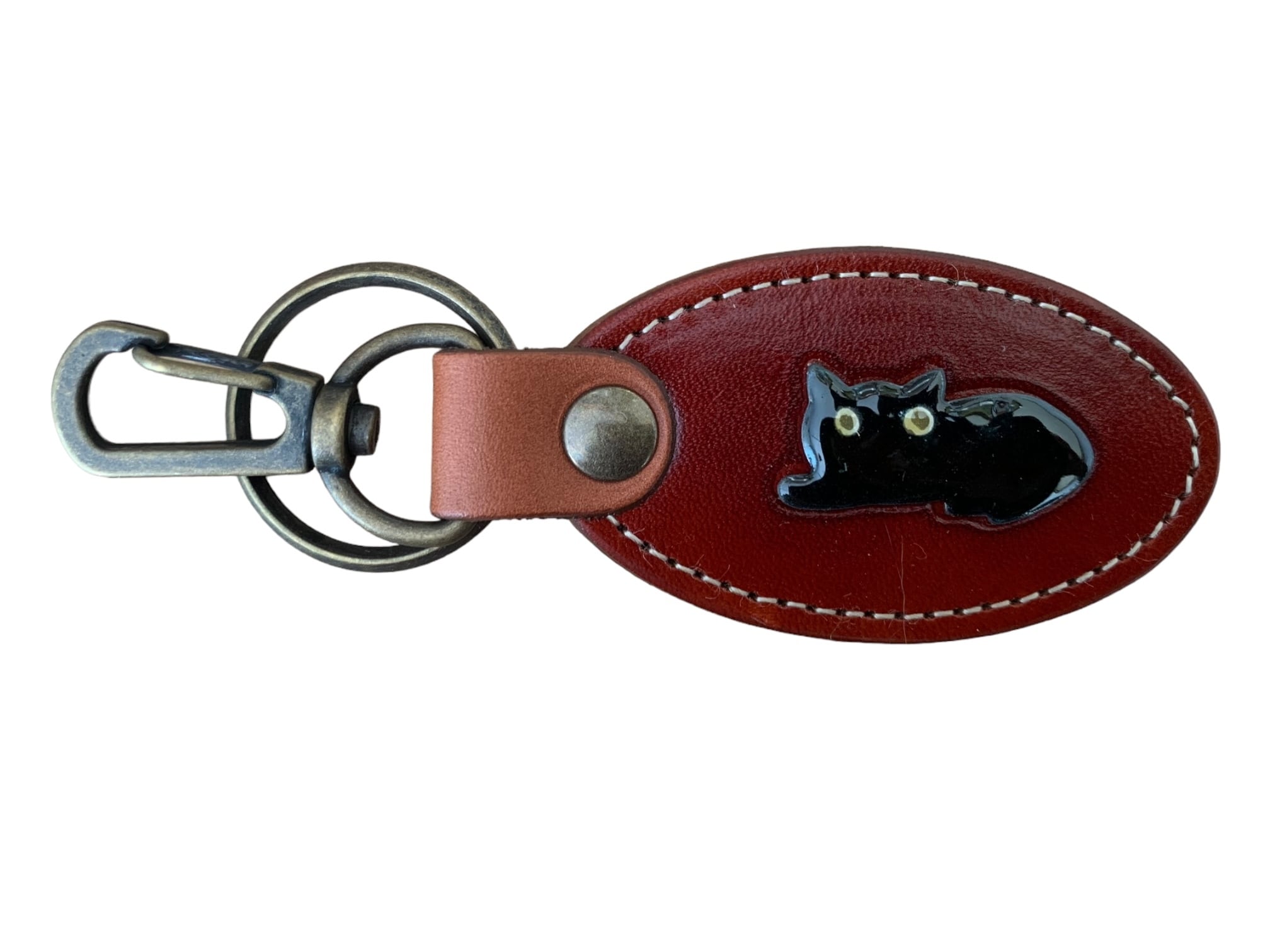 本革製のキーホルダーに、七宝焼を埋め込んで仕上げた手作り一点物のキーホルダーです。