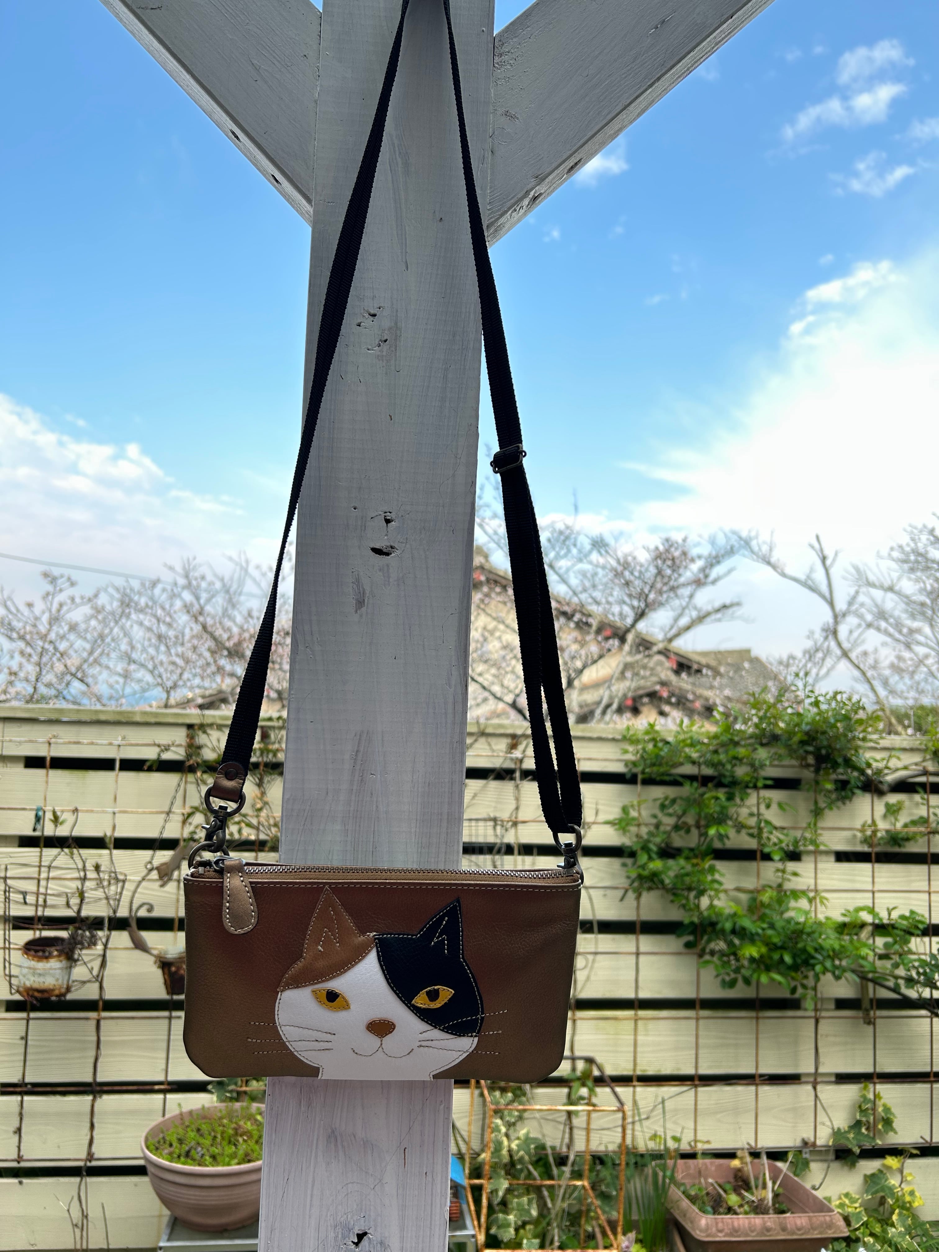 身軽に外出する際に必要なものが、一つに収納できます。猫の柄も一点物。
